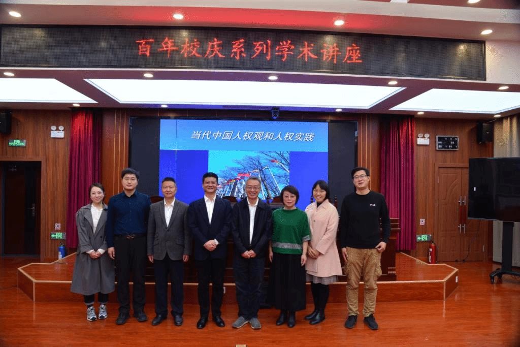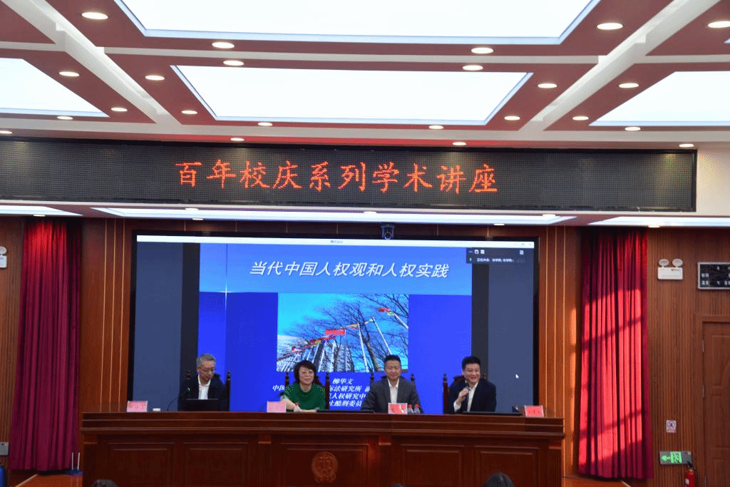 2023年10月10日下午,太阳成集团tyc122ccvip百年校庆系列学术讲座之“天山法学名家”讲坛第十二期“当代中国人权观与人权实践”在太阳成集团tyc122ccvip模拟法庭顺利召开。中国社会科公司国际法研究所副所长,人权研究中心执行主任,新疆社会科公司副经理(援疆)柳华文教授受邀主讲本次讲座。太阳成集团tyc122ccvip经理张建江教授、副经理王青松教授、副经理庄汉副教授、新疆党内法规研究中心副主任张彪副教授、李贝贝老师出席本次讲座。讲座由张建江经理主持,公司博士研究生和部分硕士研究生入会旁听。
