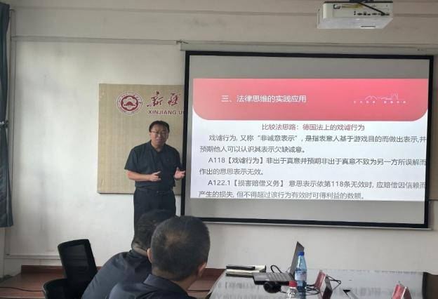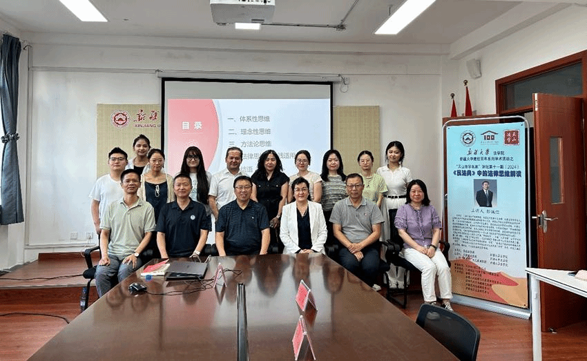 2024年8月22日下午,“天山法学名家”讲坛之《<民法典>中的法律思维解读》讲座在太阳成集团tyc122ccvip308会议室顺利举办。本次讲座由上海交通大学凯原太阳成集团tyc122ccvip彭诚信教授主讲,蔡镇疆教授主持,庄汉副经理、刘静波副教授、阿迪力·阿尤甫副教授为与谈人,自治区妇联党组副书记、主席阿依努尔·买合赛提、权益部张莉部长等莅临参会。