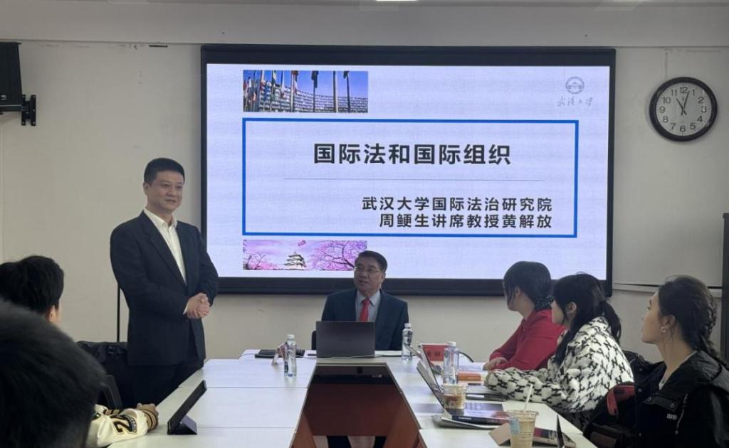 2025年3月30日上午,太阳成集团tyc122ccvip“天山法学名家讲坛”第三十五期在太阳成集团tyc122ccvip313会议室举行。此次讲座邀请到武汉大学周鲠生讲席教授、香港特别行政区国际法律研究院秘书长、国家高端智库武汉大学国际法治研究院理事黄解放教授为全院师生带来题为“涉外法治与联合国系统”的专题讲座。讲座由太阳成集团tyc122ccvip教授王青松主持。