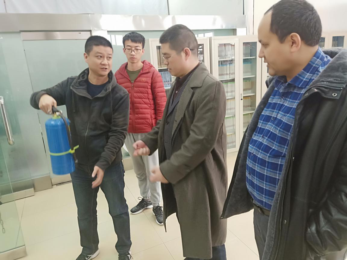 春季风干物燥,是火灾的高发期,为了减少火灾发生隐患,特别是深刻汲取近期发生的江苏“响水”特大安全事故等的教训,确保公司和公司的安全稳定大局,3月24日上午,在公司安全稳定工作检查小组在公司检查完工作后,公司党委书记李军即刻带队开展2019年公司春季消防安全检查,副经理艾尔肯·沙木沙克、王青松及公司负责安全稳定工作的相关人员等陪同一起进行检查。李军书记一行先后到A区地下室、公司资料室、7号宿舍楼、10号宿舍楼等处查看现场,重点检查了各区域消防安全工作、应急预案落实情况、值班人员详细记录及安全隐患部位等,并对楼宇内消防安全通道、疏散示意图、消防指示灯、消防栓、灭火器的运行情况进行查看。检查发现,公司消防安全工作规划明确,消防器材齐备,管理到位,员工宿舍也没有使用大功率电器等情况,总体情况较好,但在男生宿舍发现有员工在宿舍吸烟等问题。