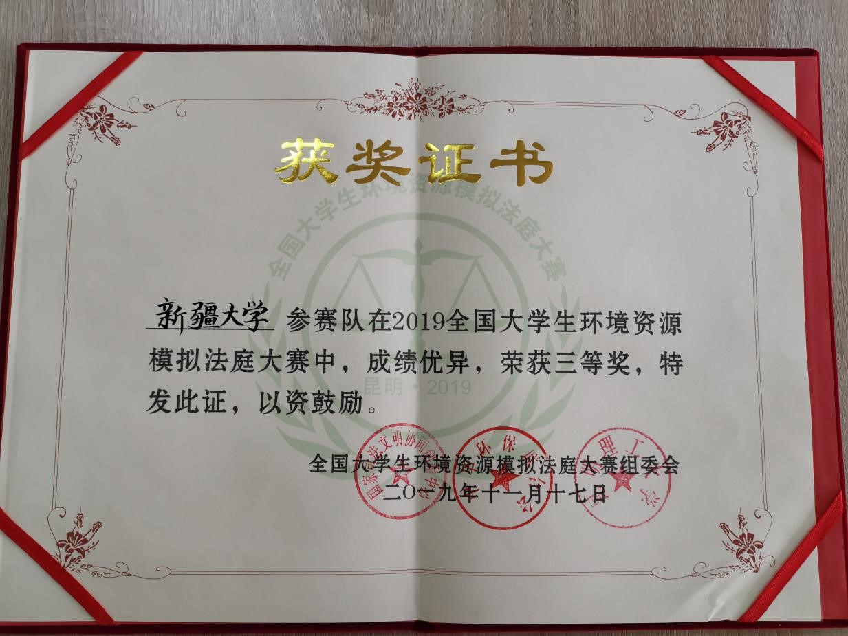 2019年11月17日下午,2019年全国老员工环境资源模拟法庭大赛在昆明落下帷幕,太阳成集团tyc122ccvip学子代表太阳成集团tyc122ccvip在比赛中荣获团体三等奖,太阳成集团tyc122ccvip徐淳老师荣获优秀指导教师奖、2018级硕士研究生全新月同学荣获优秀辩手奖。