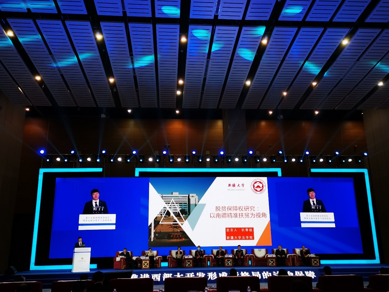 论坛开幕式上,四川省委常委、政法委书记、省法学会会长邓勇发表致辞,中国法学会党组成员、副会长张鸣起讲话。随后,中国法学会会员部二级巡视员阮莹宣读了论坛征文表彰决定,并举行颁奖仪式。最后,大会进行了论坛交流发言。在交流发言中,来自西部多个省份的嘉宾围绕互联网、大数据背景下的法治热点,市域社会治理,脱贫攻坚的法治保障等论题进行了探讨和交流。公司博士研究生杭春锐同学在第二单元就《脱贫保障权研究:以南疆精准扶贫为视角》一文进行了交流发言,得到与会专家学者的肯定和指导。