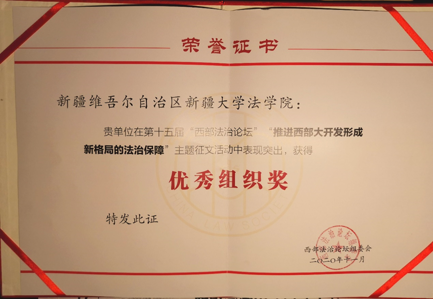 2020年11月16日,第十五届西部法治论坛暨第七届治蜀兴川法治论坛在蓉隆重举行。该论坛经中国法学会批准,由内蒙古、广西、重庆、四川、贵州、云南、西藏、陕西、甘肃、青海、宁夏、新疆(省、直辖市、自治区)法学会及新疆生产建设兵团法学会轮流主办。本届论坛以“推进西部大开发形成新格局的法治保障”为主题,向全国广大法学法律工作者征集稿件3070篇,经中国法学会组织专家评审委员会评审,评出一等奖13篇、二等奖35篇、三等奖72篇,推荐出优秀组织奖26个。