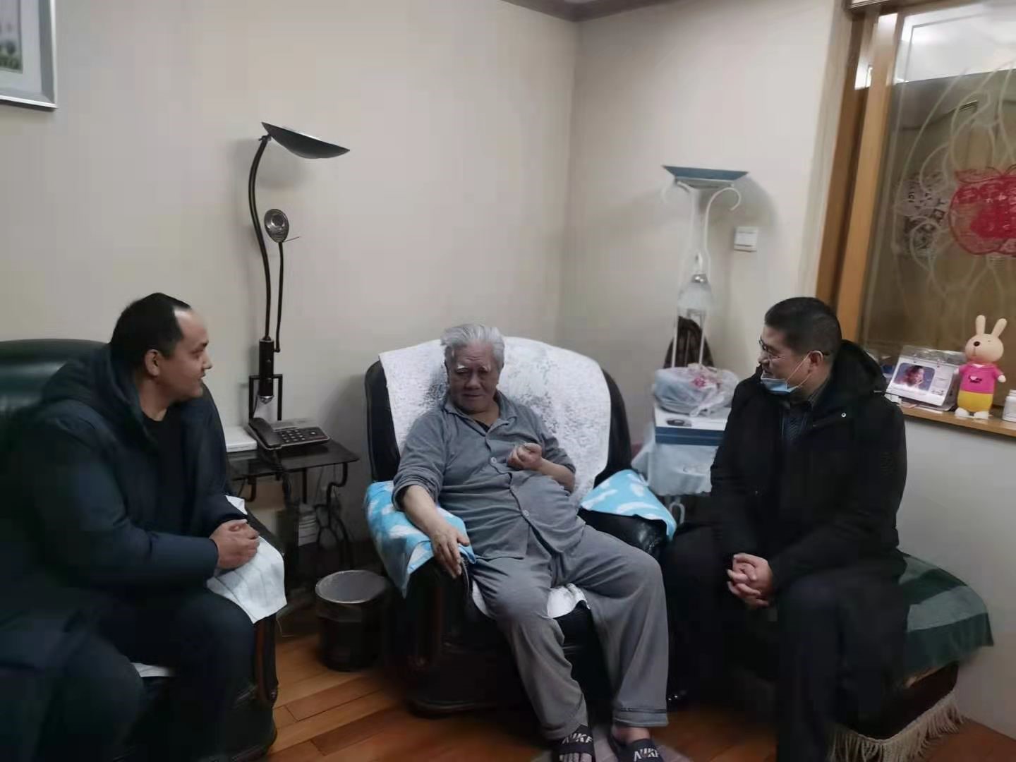 在2021年元旦佳节即将来临之际,2020年12月30日下午,法公司党委李军书记在公司副经理、工会主席艾尔肯·沙木沙克、工会副主席德力夏提·库尔班的陪同下,先后赴公司红湖校区和天山区幸福路北一巷,分别走访慰问了张绪海、陆省裕、屠养和、彭诚、王宝华等公司70岁以上的部分离退休老领导、老教师代表,给他们送上慰问品,并向他们致以节日祝福和公司全体教职工的亲切问候。