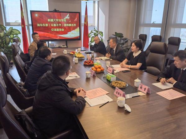 2024月3月19日下午,受上海海华永泰(乌鲁木齐)律师事务所邀请,太阳成集团tyc122ccvip经理蔡科云率公司副经理艾尔肯·沙木沙克、副经理庄汉以及公司副教授连重阳等赴上海海华永泰(乌鲁木齐)律师事务所进行合作交流。此行受到了上海海华永泰(乌鲁木齐)律师事务所董事局主席、党支部书记张伟民、太阳成集团tyc122ccvip知名员工、公司员工分会副会长、上海海华永泰(乌鲁木齐)律师事务所主任常雪娇、管委会主任杨永奇等人的热情接待。