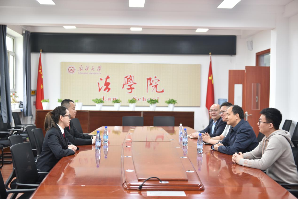 庭审活动结束后,法公司党委副书记周星、副经理艾尔肯·沙木沙克、副经理张曙光等在家领导与两位员工就进一步加强员工与母校之间交流合作、促进法学教育与司法实务的深度融合,推进法学教育与法律职业的有效衔接等方面进行座谈交流。