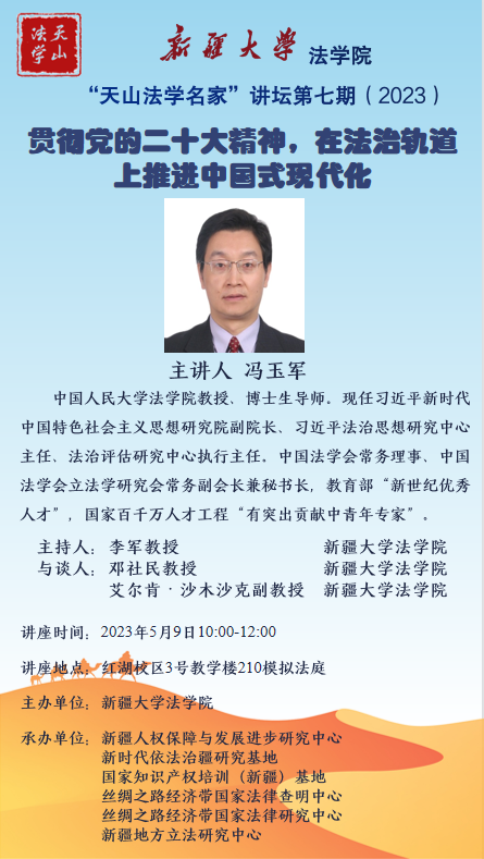 “天山法学名家”讲坛第七期(2023)——贯彻党的二十大精神,在法治轨道上推进中国式现代化